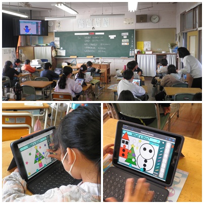 3年生の外国語活動の授業で、タブレットを使ったカードづくりをしました。 文字の入力だけではなく、創造性を発揮した作品づくりも タブレットを使うとスムーズなようです。 きれいに色もつけて、活動を楽しみました。