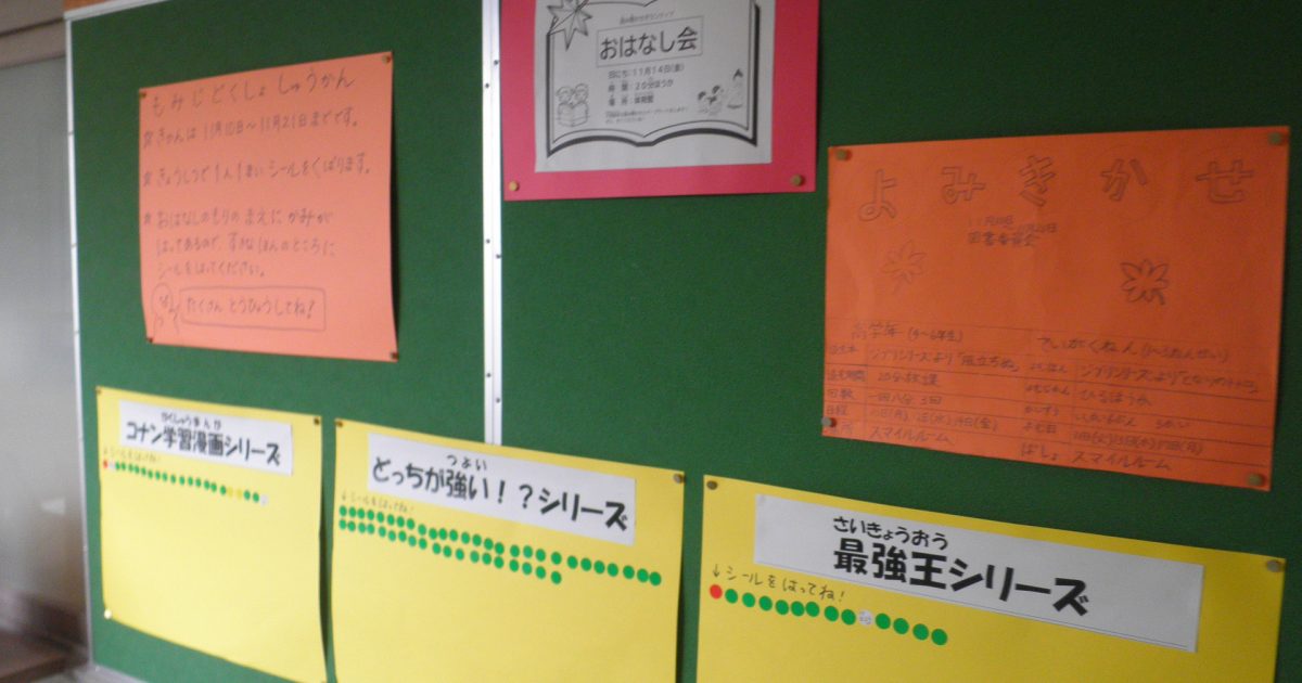 11月10日から21日までを「もみじ読書週間」とし、 図書委員会の子たちを中心にイベントそしています。 この機会に本に親しむ楽しさを感じてほしいです。