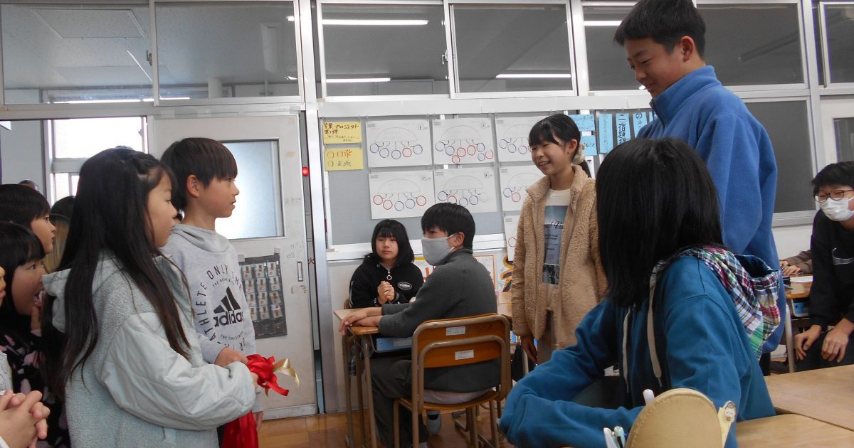 「明日の6年生を送る会で、このメダルをかけてください。」1年生児童から6年生児童に感謝のメダルが贈られました。メダルには「そつぎょうおめでとう」「いっしょにあそんでくれてありがとう」「中がっこうでもがんばってね」など、心 […]