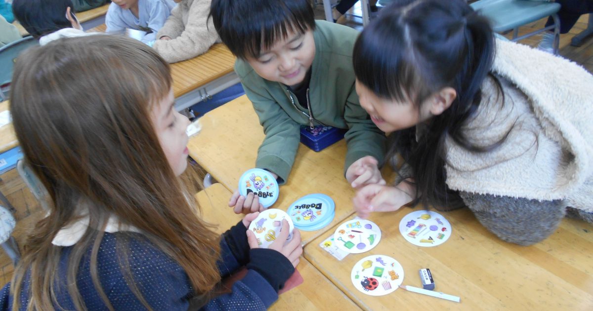 「う~ん、どれだろう??」「みつけた!!」2枚のカードを見比べて、いち早く2枚のカードに共通するキャラクターやものを見つけていました。朝の10分という短い時間で、楽しみながら学ぶ子どもたち。脳を刺激し、反射神経や観察力、 […]