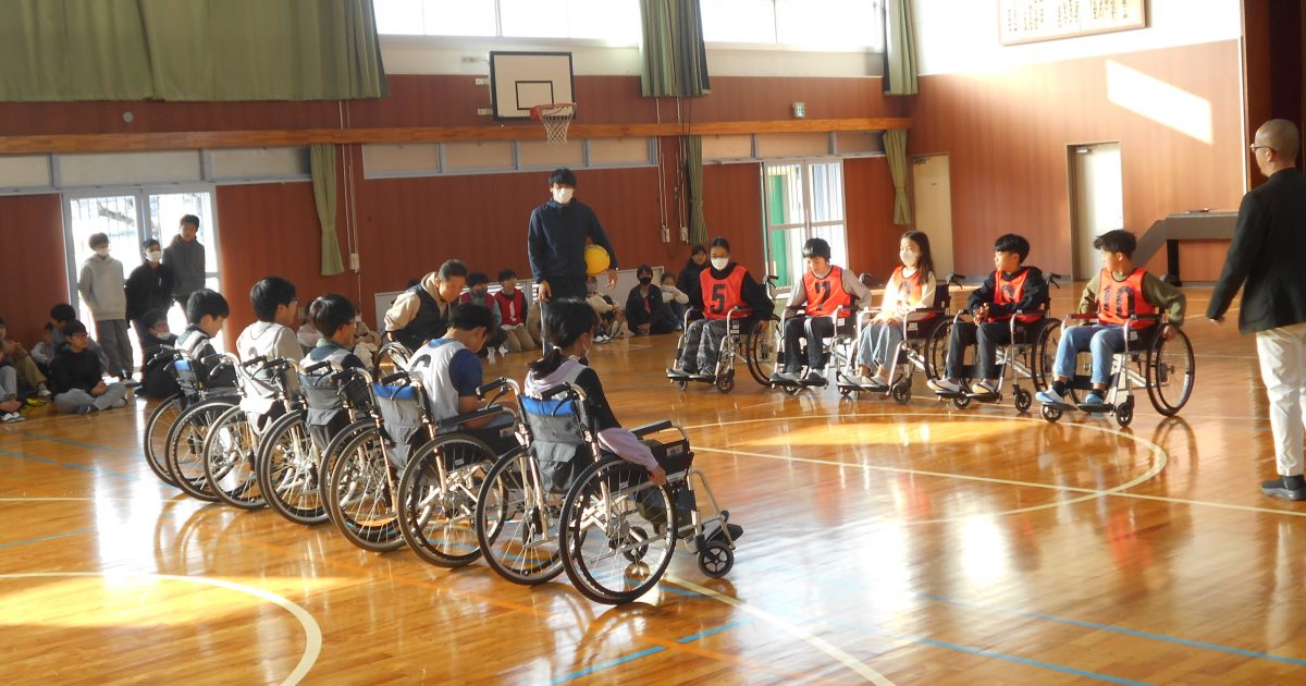 講師の方をお招きし、3年生から6年生が道徳講演会を行いました。代表児童が車いすバスケットボールを体験しました。乗り慣れない車いすの操作に苦戦していましたが、仲間と協力してボールを運んでシュートを決めると、会場全体が大いに […]