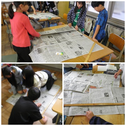 4年生の算数の授業では、1m物差しと新聞をつかって 1㎡の大きさを作りました。 こうやって作った大きさを見ると、実感を伴った大きさを知ることになります。 大切な学びの場面です。
