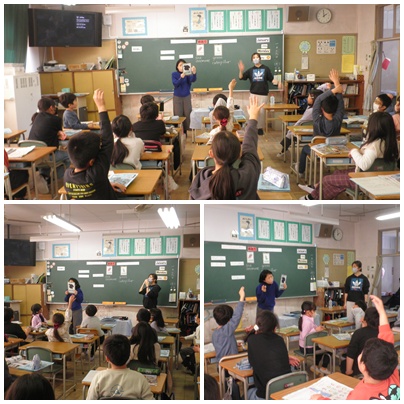 3年生の外国語活動では、 動物のシルエットから何かを当てていくクイズを楽しみました。 「これは何でしょう?」を英語で言うことから始まり、 正解の動物の英語版を知っていきます。 遊び要素の中に学びが入っています。
