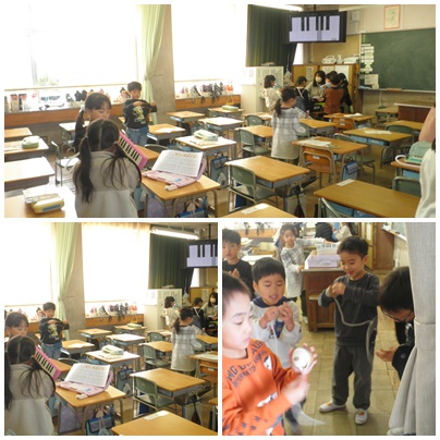 室内での放課の様子です。 1年生では、コマ回しを楽しむ姿が見られました。 自分の時間を楽しんでいます。