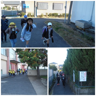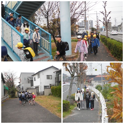 すっかり寒くなり、防寒着姿が目立つようになりました。 歩道橋で降りてくる班と北から登校する班が交差するときがあります。 その時には、歩道橋側の班が待っています。 この光景がとてもすてきだと感じます。