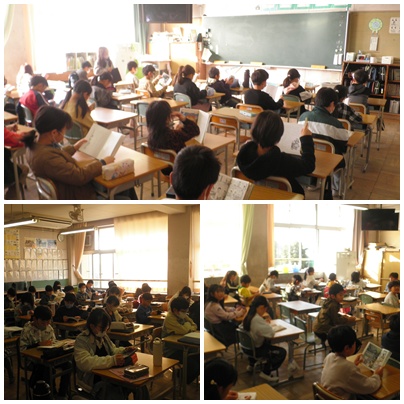 登校して、朝の会までに読書をする時間を設定しています。 朝、一旦集中してからスタートする。 教員も一緒に読書する姿があります。 このしっとりとしたスタートは2学期の締めくくりに必要です。