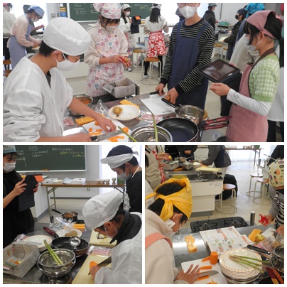 6年生の家庭科の授業で調理実習をしました。 ジャガイモの皮をむく際に包丁の使い方に苦戦しながらも 手順通りにベーコン巻きをつくります。 楽しみながらも集中する姿が見られました。