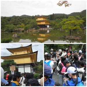 6年生 修学旅行~鹿苑寺金閣~ 2025.10.23 by e01mg 0 次は、通称「金閣寺」です。 ものすごい人の数で圧倒されました。 金閣の建物を見ることさえも、やっとの思いです。 外国の方々も多く、人気の高さを感じました。 タイミングよく「逆さ金閣」を見ることもできました。
