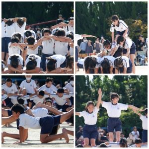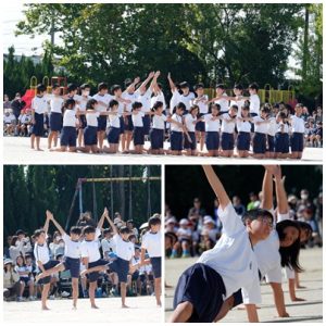 5年生 運動会~5・6年生~ 2025.11.06 by e01mg 0 高学年の力強さを感じた綱引き。 そして、音に合わせて「静と動」で表現する組体操。 高学年の姿をみて、低学年や中学年は憧れを抱いたに違いありません。 高学年の姿に美しさとたくましさを感じました。 競技「綱引きマッスル!マッスル!」 音遊「組体操」