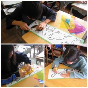 5年生の図工の授業では、色とりどりなセロハンをつかって、