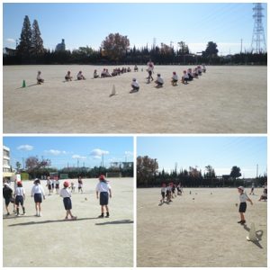 学級閉鎖明けの3年生のクラスが体育の授業で、ボール運動をしました。