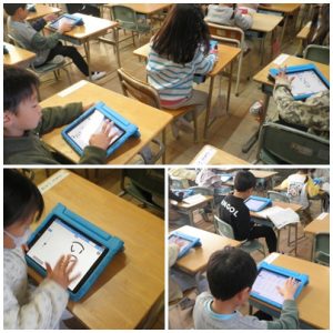 1年生の国語の授業では、タブレットに日にちの読み方を書いていました。