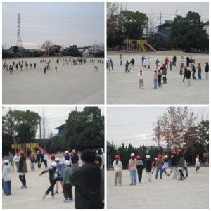 5年生 学年レクリエーション~5年生~ 2025.12.17 by e01mg 0 もうすぐ雨が降りそうな運動場ですが、 5年生の元気な声が聞こえます。 3コートに分かれて、ドッジボール大会です。 野外活動を思い出すような活気ある姿が見られました。 勝ち負けにこだわらず、男女ともに笑い声が響く光景が素敵です。