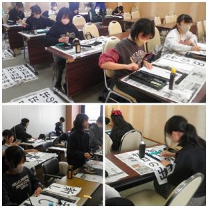 本日、公民館で書初め大会が開催されました。