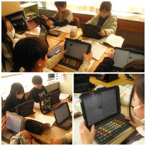 タブレットを2画面設定にして、右画面ではネットで調べ学習、左画面ではまとめをしてく