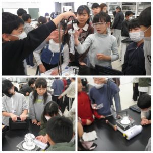 本校は、理科室が広いので、2クラス合同での実験も可能です。