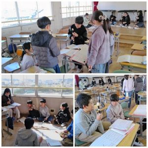 5年生の音楽の授業では、パート別に分かれてグループ練習をしました。