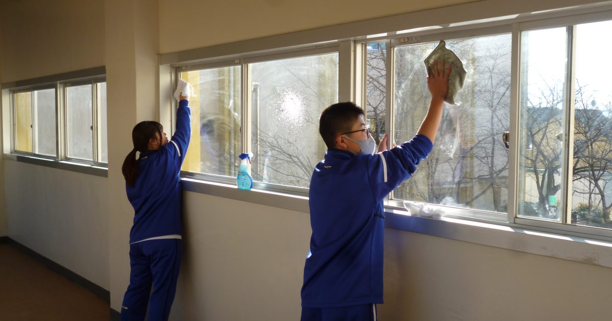 今日は、5時間目に大掃除を行いました。1年間の汚れを落とそうと、教室や廊下の床から扇風機や換気扇まで、隅々をみんなで協力してきれいにしてくれました。これで気持ちよく新年を迎えられそうです。みんなでやると気持ちいいですね。