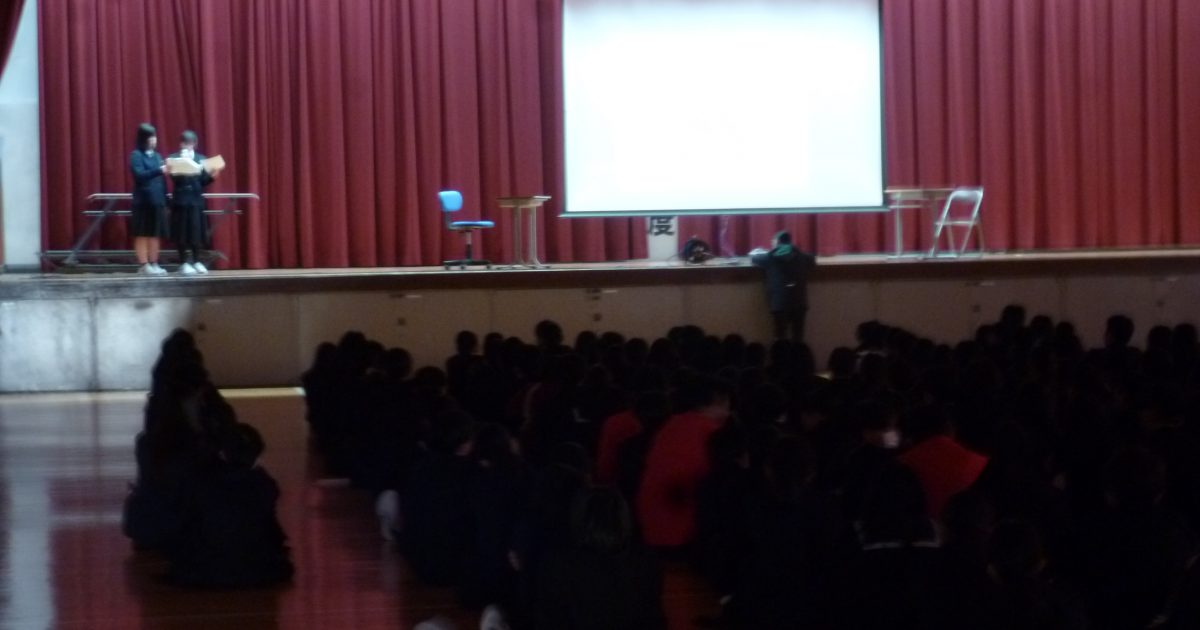 今日は、各学年が学年集会を開きました。室長会が中心となって進行が進み、2学期の反省をしたり冬休みの心構えなどを確認したりしました。室長会の皆さんの姿勢も素晴らしかったです。よい冬休みにしていきましょう。
