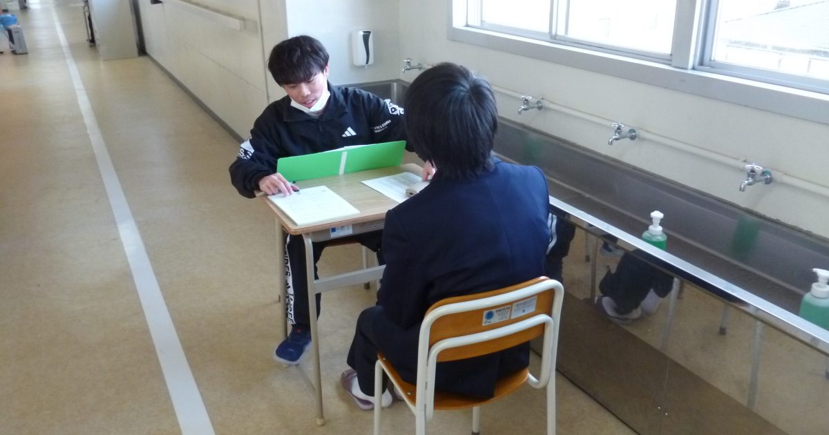 1・2年生では教育相談を行っています。3年生は進路相談を行っています。担任と生徒が学校生活や進路選択などについて1対1でじっくりと話をします。今後のよりよい学校生活の一助となってくれることを期待しています。