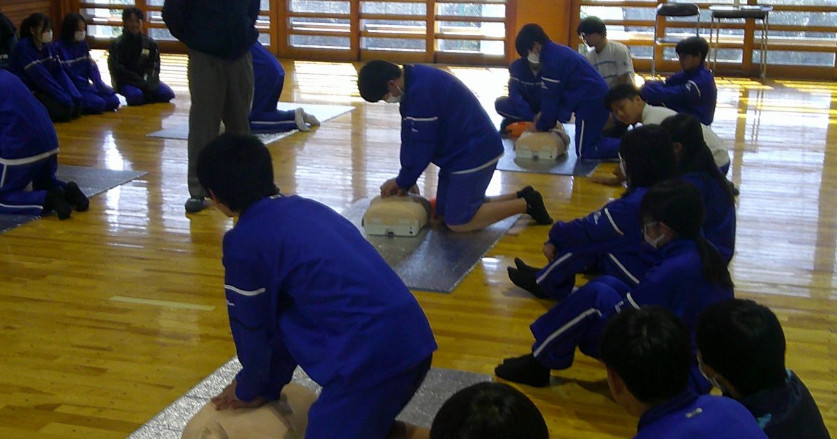 2年生が、尾張旭市消防署の方をお招きして、救命講習に取り組んでいます。実際の場面を想定した訓練で、心肺蘇生の方法や周囲への声のかけ方などを学んでいました。本番さながらに一生懸命取り組んでいる姿が頼もしかったです。