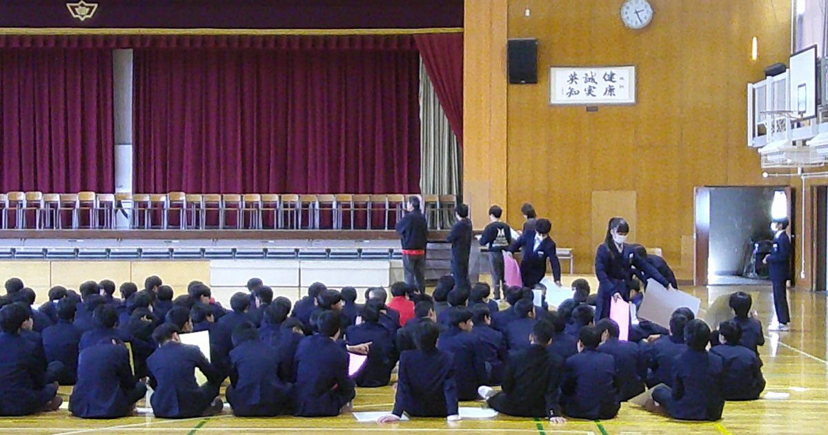 今日は、3年生が中学校生活最後の学年レクを行いました。互いに声を掛け合いながら、とても盛り上がっていました。受検を控えた中ですが、最後の楽しむ機会を存分に満喫できたようで、よい気分転換になったかなと思います。