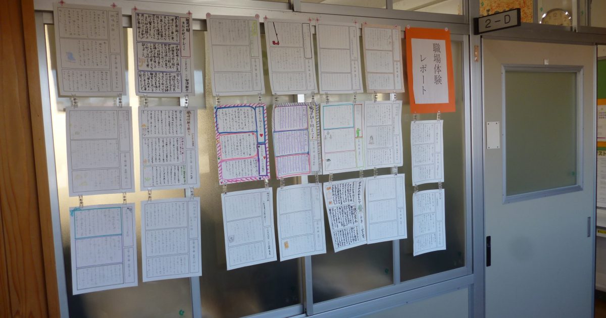 2年生の廊下には、職場体験レポートが掲示されていました。レポートの内容から、生徒たちが頑張った様子がうかがえました。多くの事業所のご協力のおかげで生徒たちは貴重な体験をすることができました。ありがとうございました。
