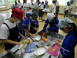 学年ニュース 家庭科調理実習 2025.10.10 by e10mg 0 今日は、家庭科の授業で調理実習を行いました。ポテトサラダを作っていましたが、電子レンジでチンしてじゃがいもの皮をむきやすくするなど、時短テクニックなども活用しておいしくつくっていました。実生活でも使ってみてくれるとうれしいです。