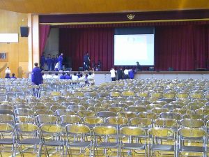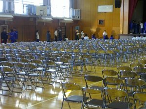 明日の旭フェスに向けて、今日は椅子並べやリハーサルなどを行いました。椅子並べは、生徒の皆さんにボランティアを募りましたが、多くの生徒が協力してくれて、あっという間に並べることができました。生徒の心のあたたかさがとても嬉しかったです。明日の旭フェスも盛り上がっていきましょう。