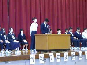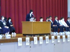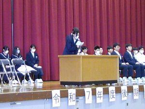 生徒会 後期生徒総会 2025.11.17 by e10mg 0 今日は、令和7年度の後期生徒総会が行われました。生徒総会では、すべての提案が承認され、後期の生徒会活動が始まることとなりました。後期の生徒会の活躍にも期待しています。