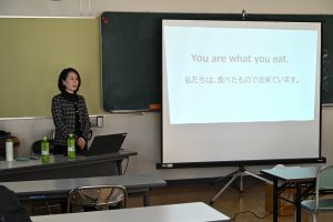 6日(土)の午後に、旭中学校の多目的教室で、学校運営協議会主催の食育講演会と筋トレ・エクササイズ体験会が開催されました。旭中学校の生徒や保護者の方、地域の方にご参加いただきました。食育後援会では、代謝などの体内で起こっていることについて学ぶとともに、実際に食材を選ぶ際の視点について考えることができました。また、筋トレ体験では、自宅でもできる筋トレに取り組みながら、体の仕組みや運動の大切さについて共有することができました。参加していただいた皆様、ありがとうございました。