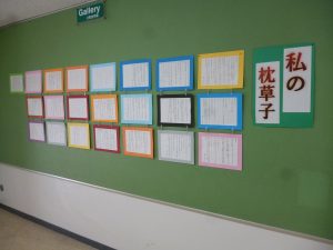 2年生 私の枕草子 2026.01.14 by e10mg 0 2年生の掲示板には、「私の枕草子」の作品が掲示されています。清少納言が季節について想いを自由に書き記したように、生徒たち自身の感じたことが心の赴くままに書かれています。学校公開で来校された際にご覧いただければ幸いです。