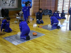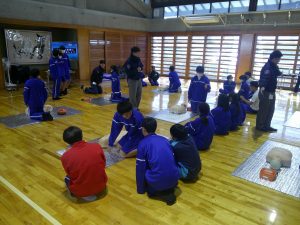 2年生 救命講習 2026.02.20 by e10mg 0 2年生が、尾張旭市消防署の方をお招きして、救命講習に取り組んでいます。実際の場面を想定した訓練で、心肺蘇生の方法や周囲への声のかけ方などを学んでいました。本番さながらに一生懸命取り組んでいる姿が頼もしかったです。