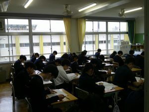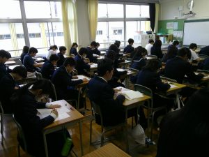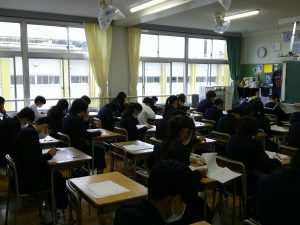 今日は、3年生が全国学力学習状況調査の国語と数学に取り組みました。今年度は、国語・数学・英語の3教科が実施されていますが、英語については、別日程でタブレットやヘッドセットを使って出題・解答が行われます。難しい問題もあったと思いますが、最後まで一生懸命に取り組んでいる姿がすばらしかったです。お疲れさまでした。