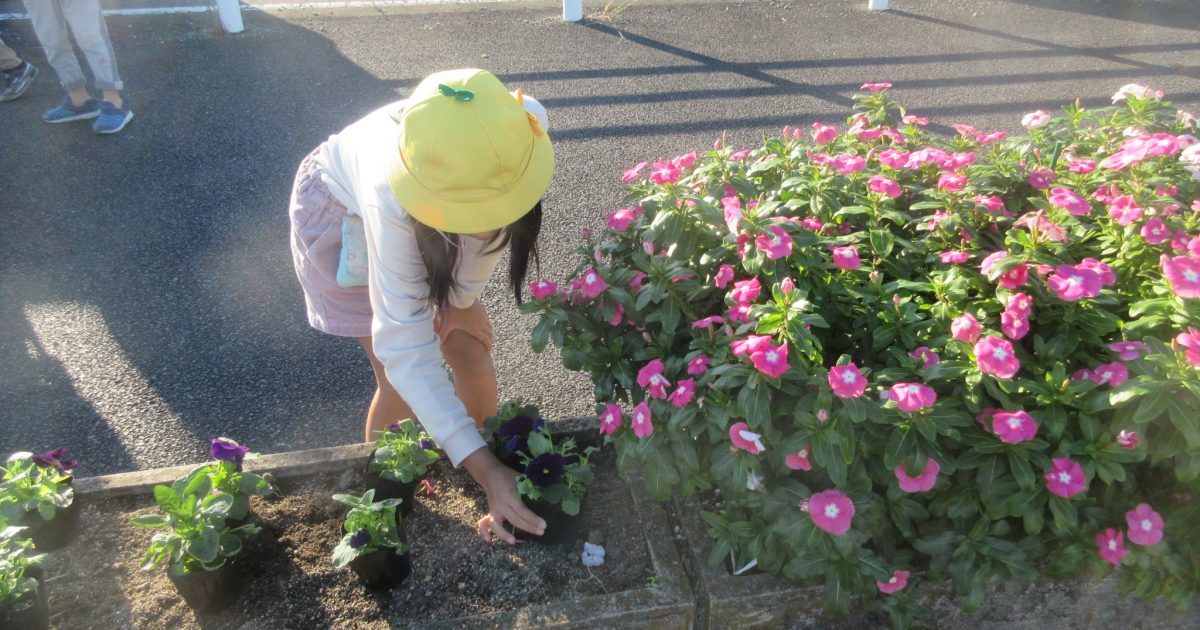 10月23日(金)ガーデンパートナーの子どもたちが、名古屋銀行の交差点のそばにある花壇の植え替えを行いました。もう少し楽しめそうなニチニチソウとマリーゴールド、ガザニアを残し、キンギョソウやパンジーなどを植えました。これ […]