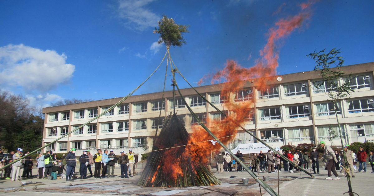 1月11日(日)校庭で「どんど焼き」が行われました。風の強い寒い日でしたが、大勢の方が集まり今年もよい年になるよう願いました。