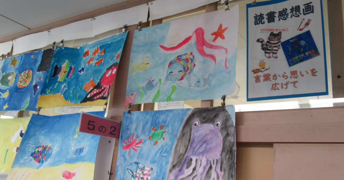11月14日(金)2学期にどの学年も読書感想画に取り組みました。廊下には、子どもたちの様々な作品が展示されています。来週20日の学校公開で、ご覧ください!