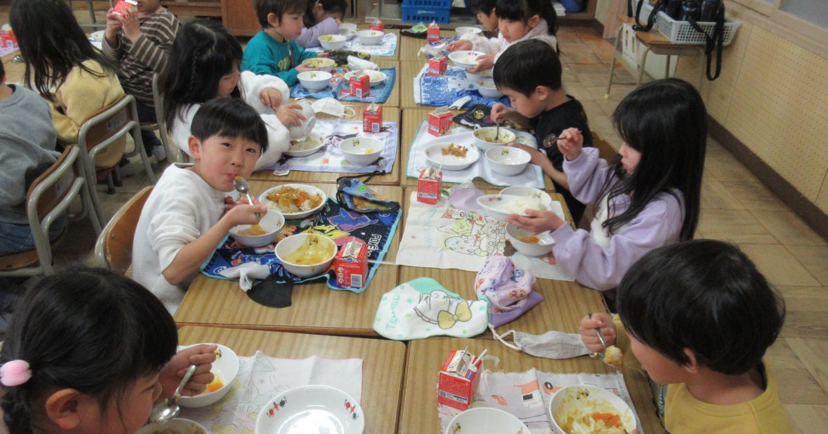 1月8日(木)今日から給食が始まりました。学期始めの給食はカレーライスです。今日はチキンカレーでした。低学年も、給食当番の仕事を自分たちでじょうずに行っています。