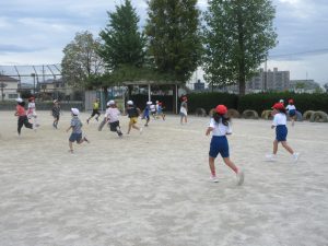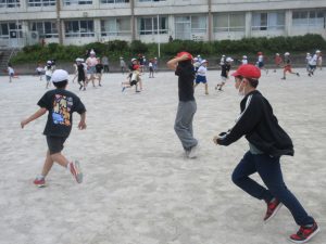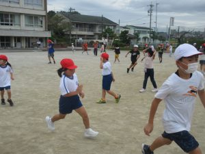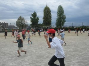 9月29日(月)の20分放課、秋のさわやかな空のもと、運動場で児童会の企画による「ふやしおに」が行われました。はじめは数人だった鬼も、時間が経つにつれてどんどん増えていき、運動場を元気いっぱいに走り回る子どもたちの笑い声が響いていました。学年を問わず、みんなが一緒になって楽しむ姿がとても印象的でした。児童会の工夫と準備のおかげで、笑顔が溢れるひとときとなりました。
