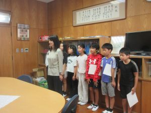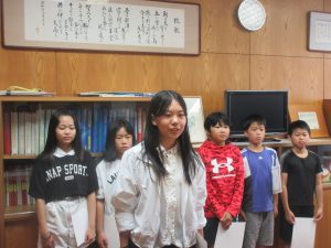 10月1日(水)学校集会で、後期学級委員と児童会会長・児童会役員の認証式を行いました。全校みんなで楽しい学級、楽しい学校になるように協力しましょうね。また、「わくわく自由研究」で優秀な成績を収めた児童の表彰も行いました。おめでとうございます。