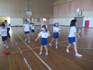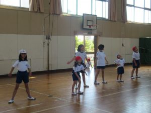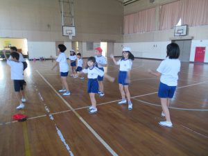 10月9日(木)なかよし学級の体育は、毎回、ラジオ体操から始めます。みんな体操の順番を覚えていて、しっかり体操をしています。また、今日の体育の授業では、1,2年生が運動会で行うダンスの練習を行いました。壁に映した動画を見ながら楽しく練習しました。