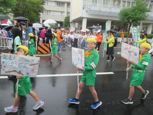 10月11日(土)小雨が降る中でしたが、市民祭のパレードが行われました。交通少年団や金管クラブで活躍している児童がパレードに参加しました。金管クラブの演奏では、沿道の人から「上手だね」という言葉が聞かれました。素晴らしかったです!