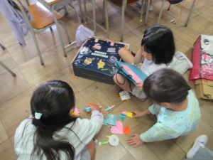 2年 2年生活科 おもちゃづくり 2025.10.27 by e08mg 0 10月27日(月)2年生が生活科「うごく うごく わたしのおもちゃ」の単元で、おもちゃをつくりました。1年生を招待して、そのおもちゃで遊んでもらいます。そのために、2年生は準備をがんばっています。
