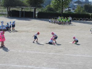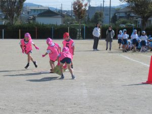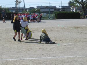 10月29日(水)1、2年生が、運動会の練習を行っていました。今日が本番前の最後の練習ということで、みんな頑張っていました。友達と協力しなければできない競技です。本番も楽しく仲よくがんばりましょう。インフルエンザの児童が少しずつ増えてきています。体調管理に気をつけてください。