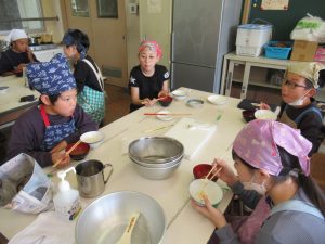 5年 5年生 調理実習「ご飯とみそ汁」 2025.11.06 by e08mg 0 11月6日(木)5年生が、家庭科の授業で、ご飯とみそ汁を作りました。ご飯は炊飯器ではなくお鍋で炊きました。みそ汁は煮干しから出汁をとって作りました。とってもおいしいご飯とお味噌汁ができあがりました。ぜひ、お家でも作ってくださいね!