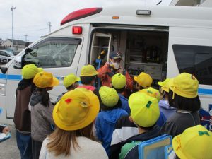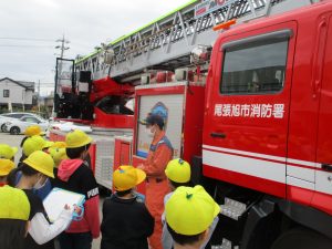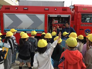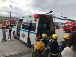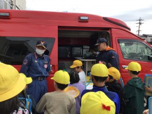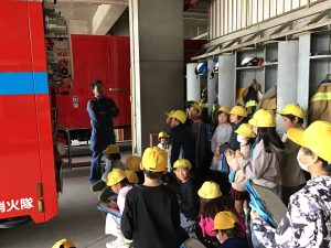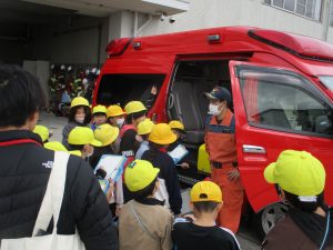 11月12日(水)3年生が、社会科の学習で、消防署へ見学にでかけました。消防士さんたちが、普段どのような仕事をしているのか教えてもらったり、ポンプ車やはしご車など車種によって働きがちがうことなど、実際に消防車の中を見ながら説明してもらったりしました。ありがとうございました!
