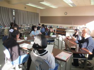 11月17日(月) 第2回学校運営協議会を行いました。今日は、5年生と6年生の代表児童と学校運営協議会の委員の皆様で、「子ども会議」を行いました。話し合いのテーマは「学校と地域のよいところや自慢」です。4年生以上の児童でアンケートを取り順位を決めたところ、第1位は、「自然が多くある」ことでした。「地域の人と児童が交流できる機会や行事が多い」などもありました。アンケート結果をもとに、「これからどんな学校、どんな地域にしていきたいか」話し合いました。代表児童は、しっかり自分の考えを発表することができました。