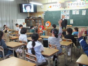 11月18日(火)3年生が、人権擁護委員の方にお越しいただき、「人権」について考える授業を行いました。「いじめ」について考えたり、「自分らしさ」について話し合ったりしました。今日教えていただいた「だれもが、自由にしあわせに生きていく権利」を、これからも大切にしていってもらいたいと思います。