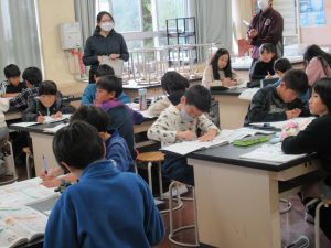 11月19日(水)5時間目に4年生理科「ものの温まり方」の研究授業を行いました。水を温めたり冷やしたりすると体積はどうなるか、実験して調べました。自分たちで予想して実験して、分かったことをまとめていました。しっかり授業に取り組んでおり、感心しました。