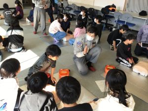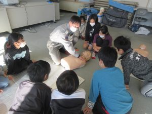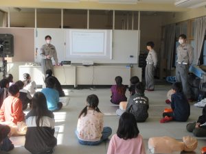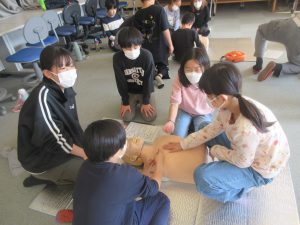5年 5年 救命講習 2025.11.26 by e08mg 0 11月26日(水)5年生が、消防署の方にお越しいただき「救命講習」を行いました。胸骨圧迫の仕方やAEDの使い方などを教えていただきました。いざというときに、今日の講習を思い出してくれたらと思います。